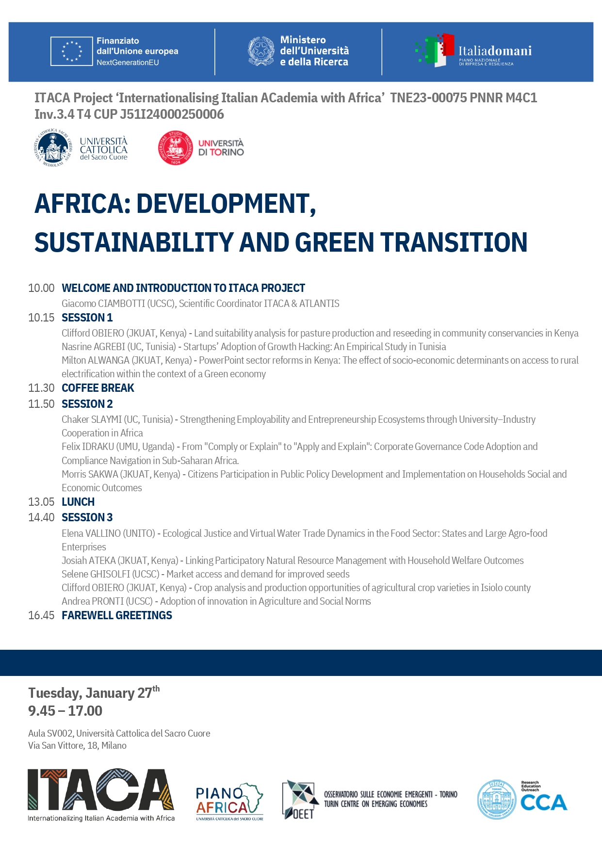 Josiah ATEKA (JKUAT, Kenya) - Linking Participatory Natural Resource Management with Household Welfare Outcomes Selene GHISOLFI (UCSC) - Market access and demand for improved seeds